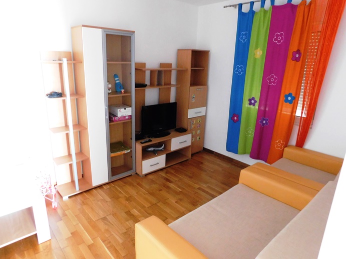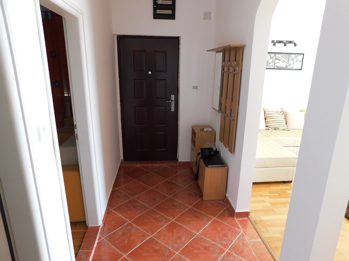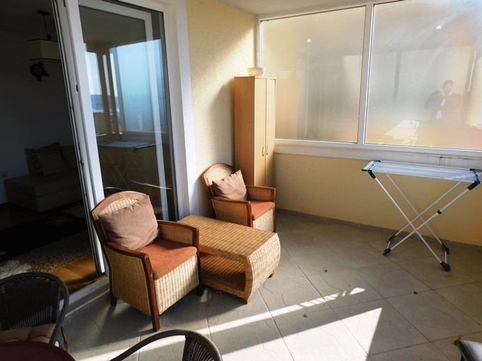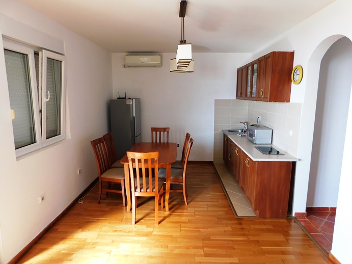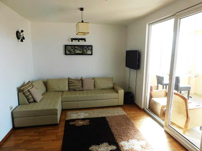 The apartment consists of an entrance hallway big enoung to provide storage space, a living room/dining room/kitchen area that comes out on a large covered balcony with an amazing unobstructed seaview of the bay of Tivat and enough room to spend most of your day on it and two decent size bedrooms.