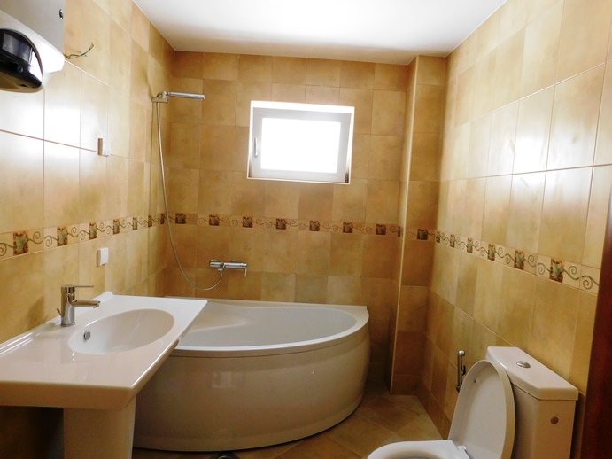 The apartment consists of a hallway, two bedrooms out of which one with a balcony, a kitchen/dining/living room with a balcony a bathroom with a shower and a bathroom with a jacuzzi bathtub.